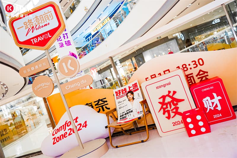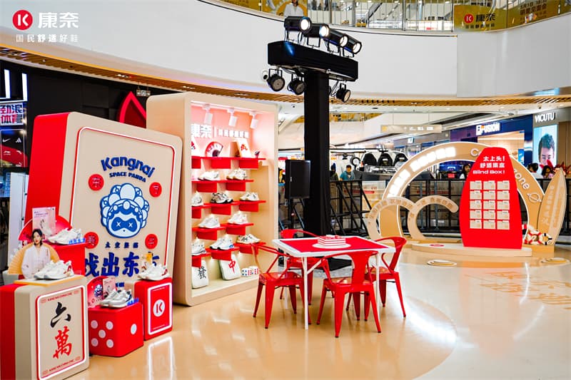 舒適國潮圈:結(jié)合國潮文化,以麻將“發(fā)、財(cái)”為設(shè)計(jì)亮點(diǎn),提供了翻牌互動游戲,讓游客在體驗(yàn)傳統(tǒng)文化的同時(shí),感受康奈新品的獨(dú)特魅力。