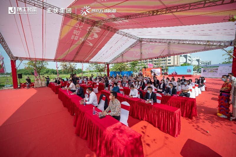 舉行奠基儀式,公司領導、合作伙伴及員工代表共同為廠房奠基。